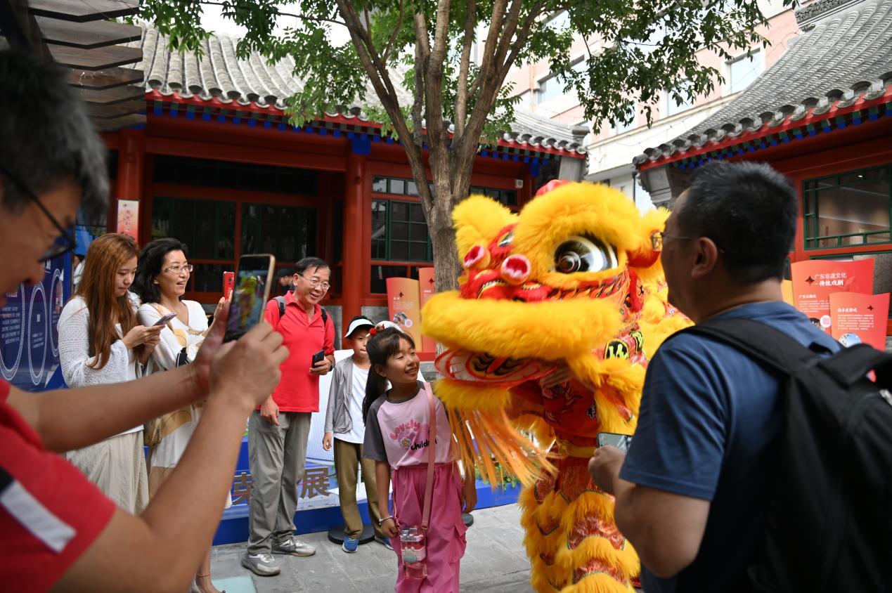 “带家人来蒙藏学校旧址看展览,意外碰上了醒狮表演,一下就被圈粉了!”市民李女士举着手机全程录像,“锣鼓声一响,大家就跟着打节拍,这种节目还是现场氛围好啊。”来自湖南的观众张先生也感慨:“第一次在北京近距离看了广东醒狮,动作又灵活又有讲究,还学到了‘采青’的寓意,这趟来值了!”